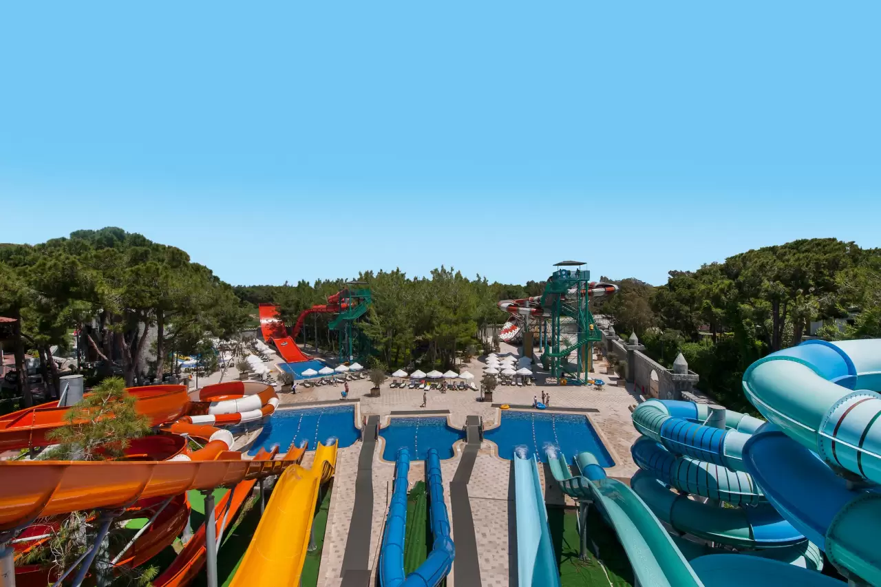 Dive into excitement at our extensive Aqualand, featuring thrilling water slides, lazy rivers, and recreational pools for all ages. With both adrenaline-pumping rides and relaxing lounges, it's a water world of fun for the entire family.
